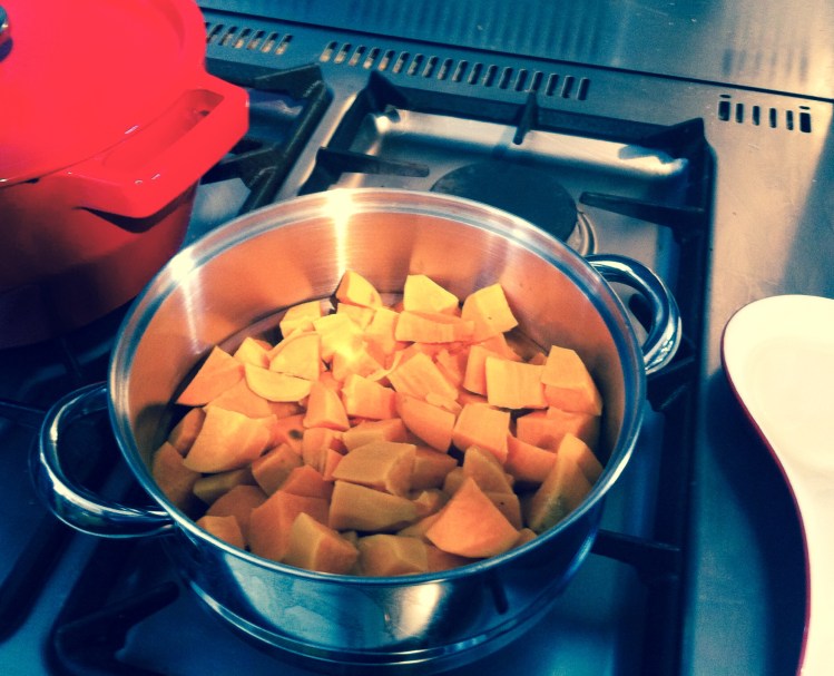 -Add the sweet potatoes to a pan of boiling water and keep on a medium heat