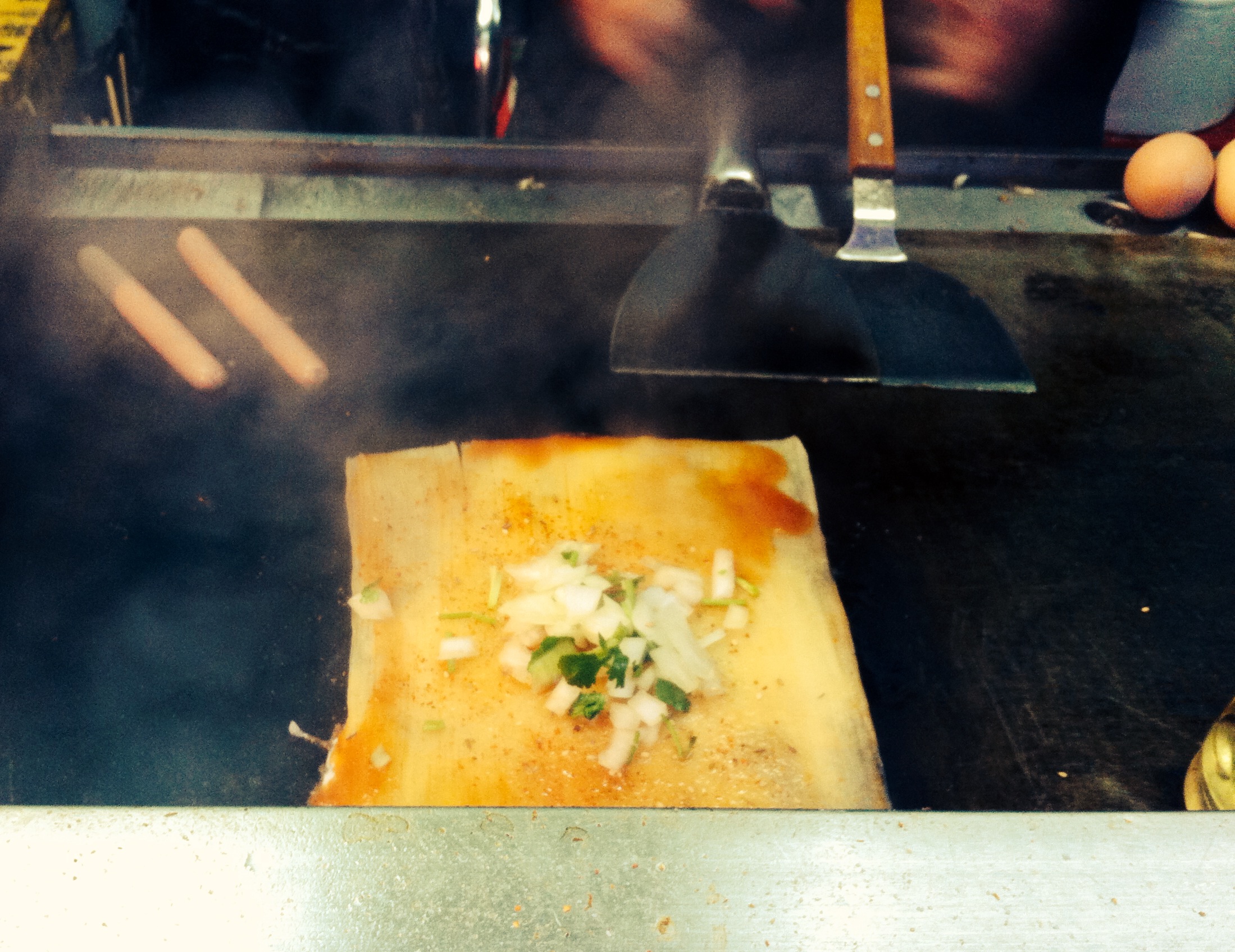 The food here was very different from that in other areas of China I had visited, but it was just as tasty, with less spice being replaced by more richness with many potato and sausages based recipes. From a street vender I tried a pancake which consisted of spring onion, sausage and egg. Well-seasoned I went back for more, before being drawn towards the next vender selling various meats and seafood on kebab sticks. These too were delicious. I tried the chicken and pork kebabs which were lightly spiced with cumin and turmeric.