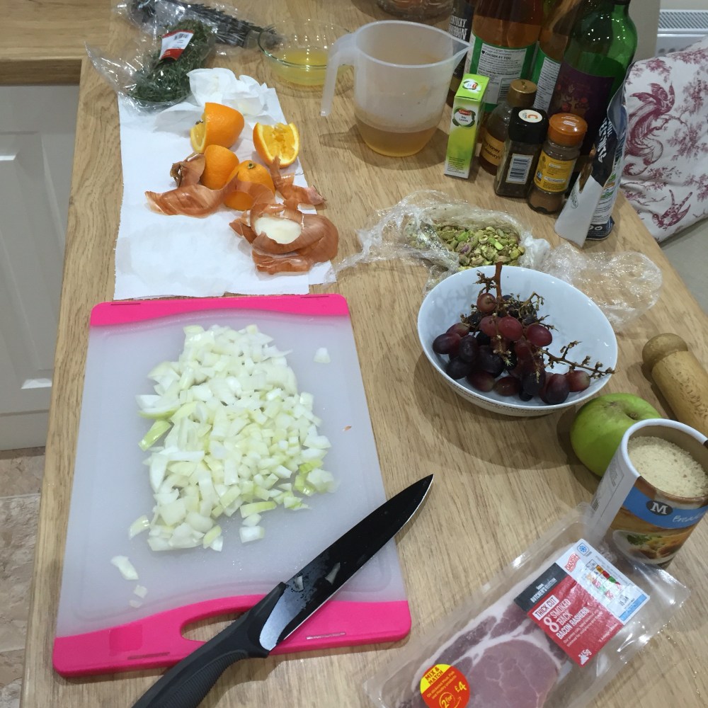 Anyway, like any good stuffing, you can eat this dish just by itself and you’ll be more than satisfied! It’s packed full of flavour and texture, from the smokiness of the bacon, sweetness from the grapes and wine, to the sharpness of the cooking apple and the strength of the onions and garlic coming through in the dish.