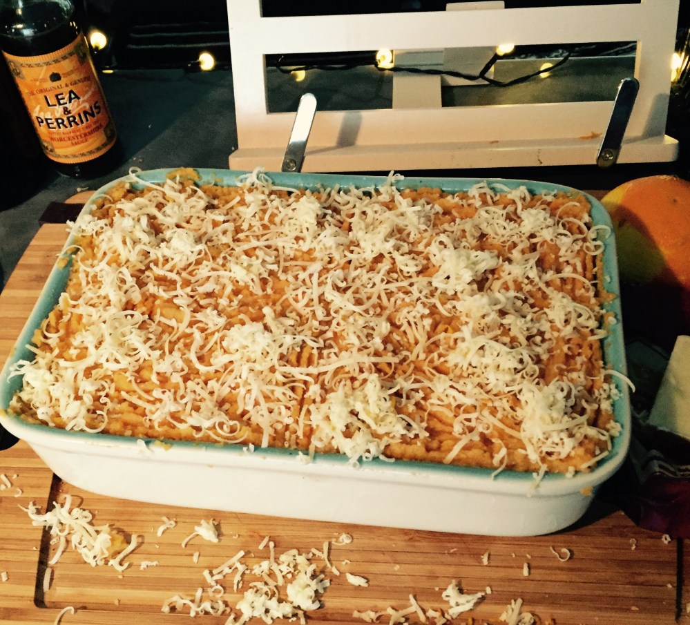 I’ve swapped the traditional minced lamb for minced turkey, white potato for sweet potato, and threw some grated orange zest into the mix too see what happens!