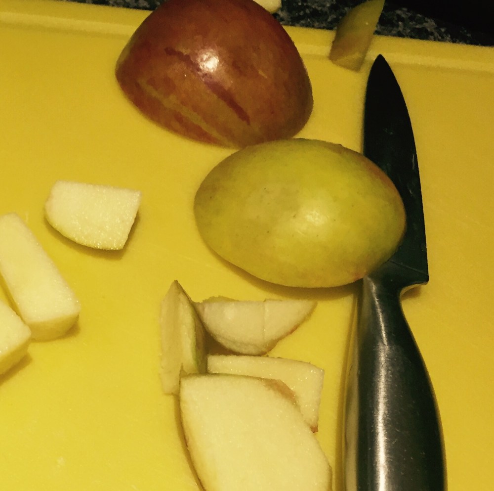 I firstly spotted an apple in the fruit bowl. Then I thought Cinnamon, an apples perfect companion, which I found in the spice cupboard next to some Golden Syrup (that’ll do too!).