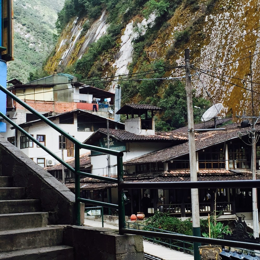 It was late morning by the time we had finished. We got back in the minibus and after a short drive arrived at Machu Picchu district area, alongside a railway track that led to Aguas Calientes, the village at the base of the mountain itself.