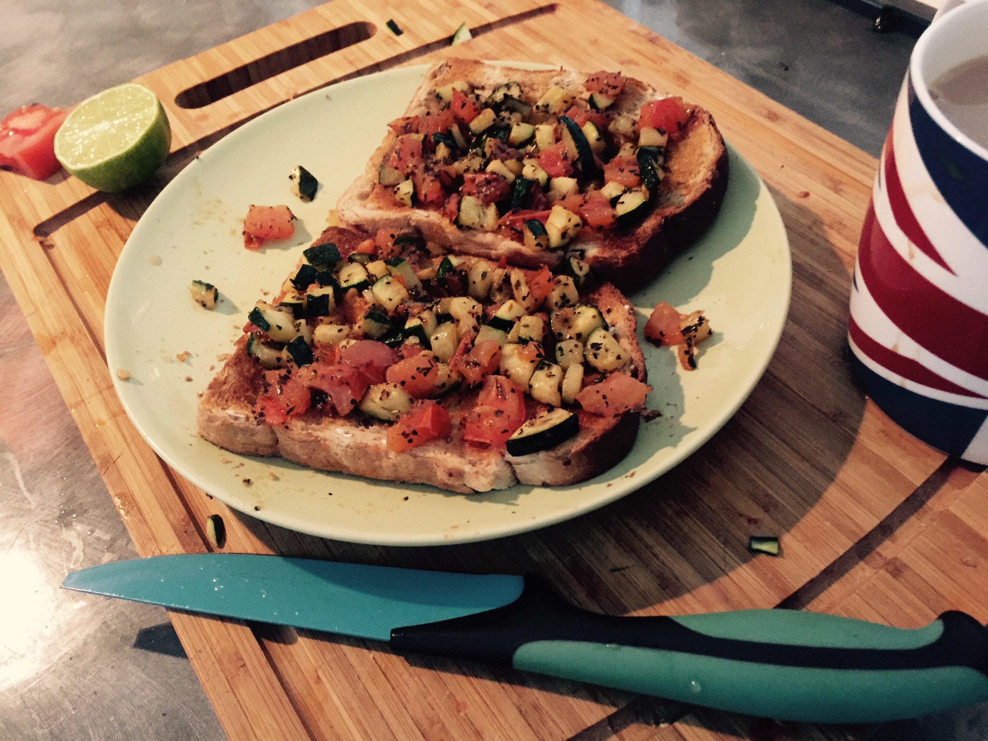 Don’t waste your leftover vegetables. For my lunch today I made a delicious meal from half a courgette and a tomato!