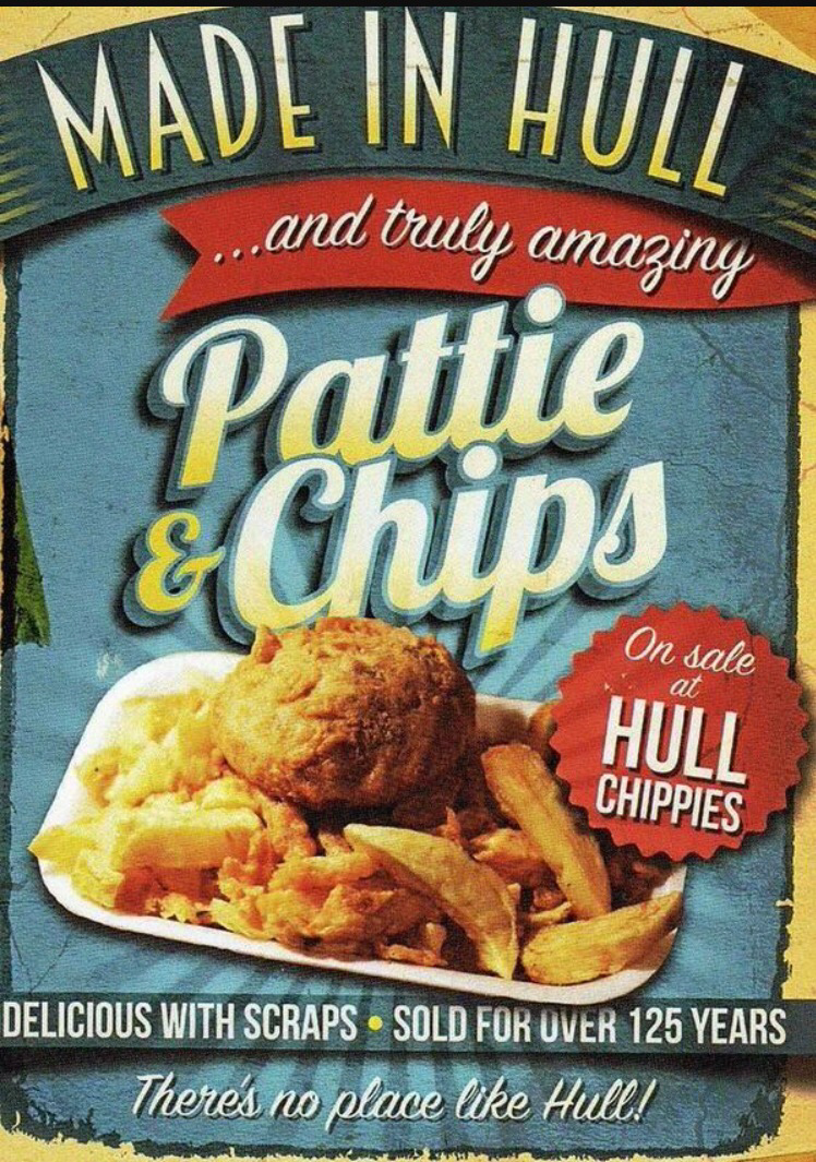 I’d visited Hull a few times before my recent visit this month, but I had never tried Patties (pronounced “Pa-ies” by the locals). On sale at the majority of fish & chip shops in Hull, are these sage flavoured, deep fried, mash potato cakes. Although not recommended as part of a balanced nutritious diet, Hulls Patties are really tasty, particularly if drizzled with vinegar and a sprinkle of chip shop spice!