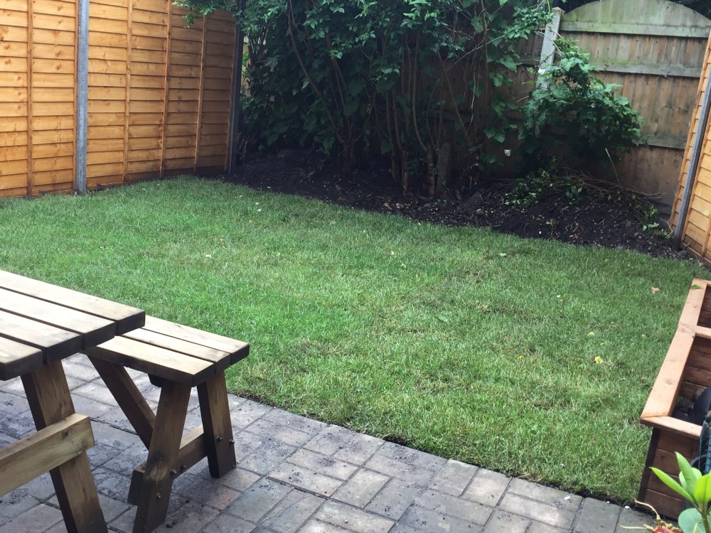 Its been quite a transformation. New fences and posts have replaced the old rotten ones, there has been lots of levelling out of the ground and laying new turf. A surprising amount of bricks were unearthed during all this, which I’ll be using to build a raised bed. Another thanks is due here to my brother in law David, a Constructional Engineer by trade, which comes in handy when measuring up and setting concrete!!
