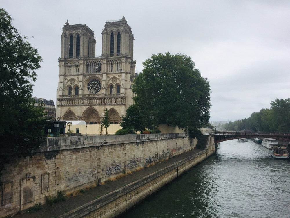 From here we walked 20 minutes or so over to Notre Dame. Despite the fire that engulfed the building earlier this year, the 11th century Gothic cathedral still looked impressive. Rain looked imminent, and we were ready for lunch, so we stopped off at cafe bar about ten minutes walk over the river away from Notre Dame (avoiding the higher tourist prices), and enjoyed some cheeses and bread, with some wine to wash it down.